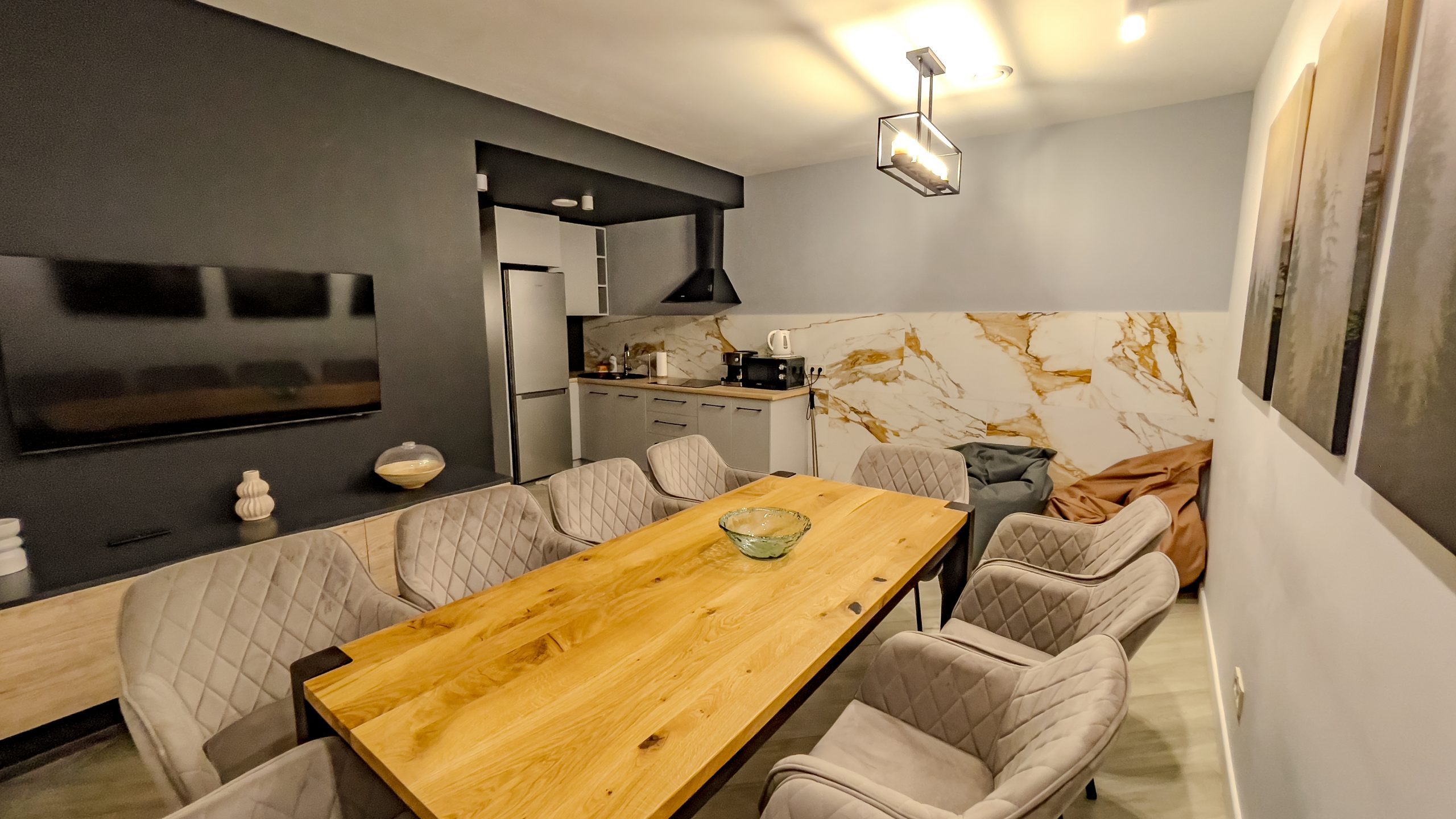 Цей двоповерховий таунхаус на 4 спальні ідеально підходить для відпочинку великої родини з дітьми або компанії друзів до 8 дорослих і дітей. Просторий, затишний і максимально функціональний — він забезпечує комфорт кожному гостю, незалежно від віку.