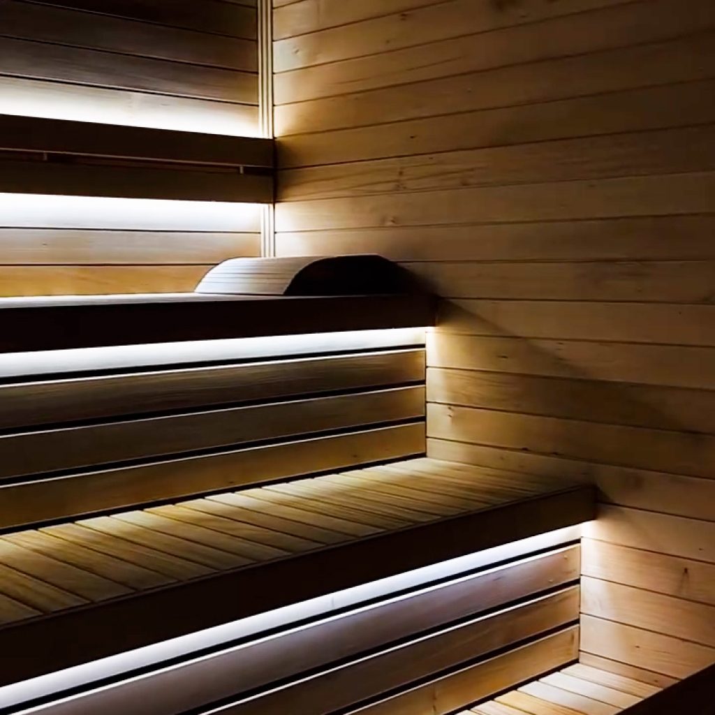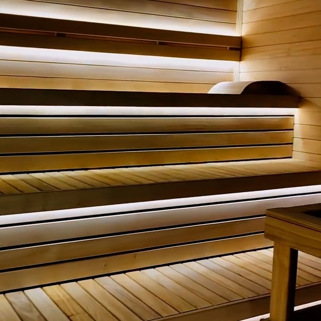 Наша фінська сауна виготовлена з натурального дерева, підтримується ідеальна температура, а всередині — приглушене світло, зручні лавки та відчуття повної тиші.