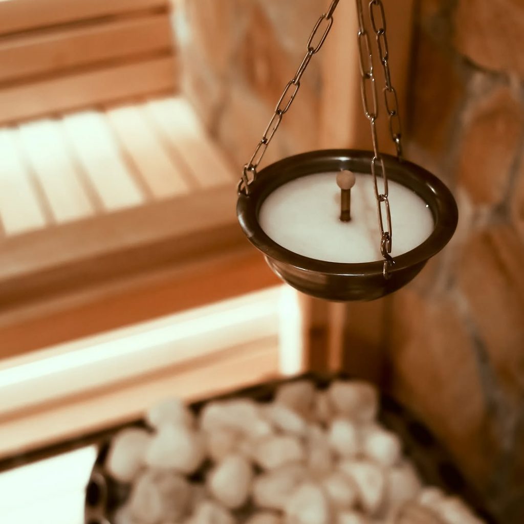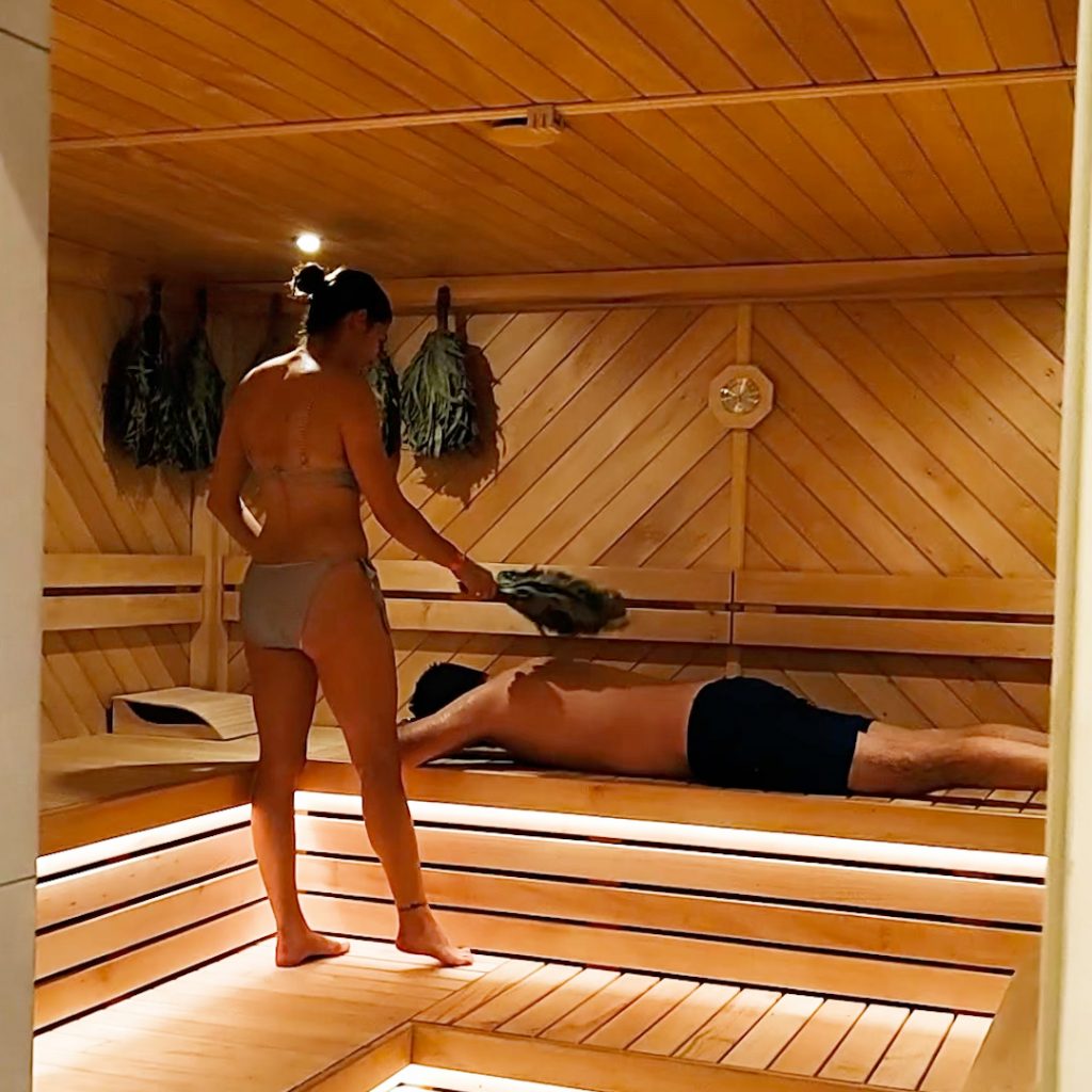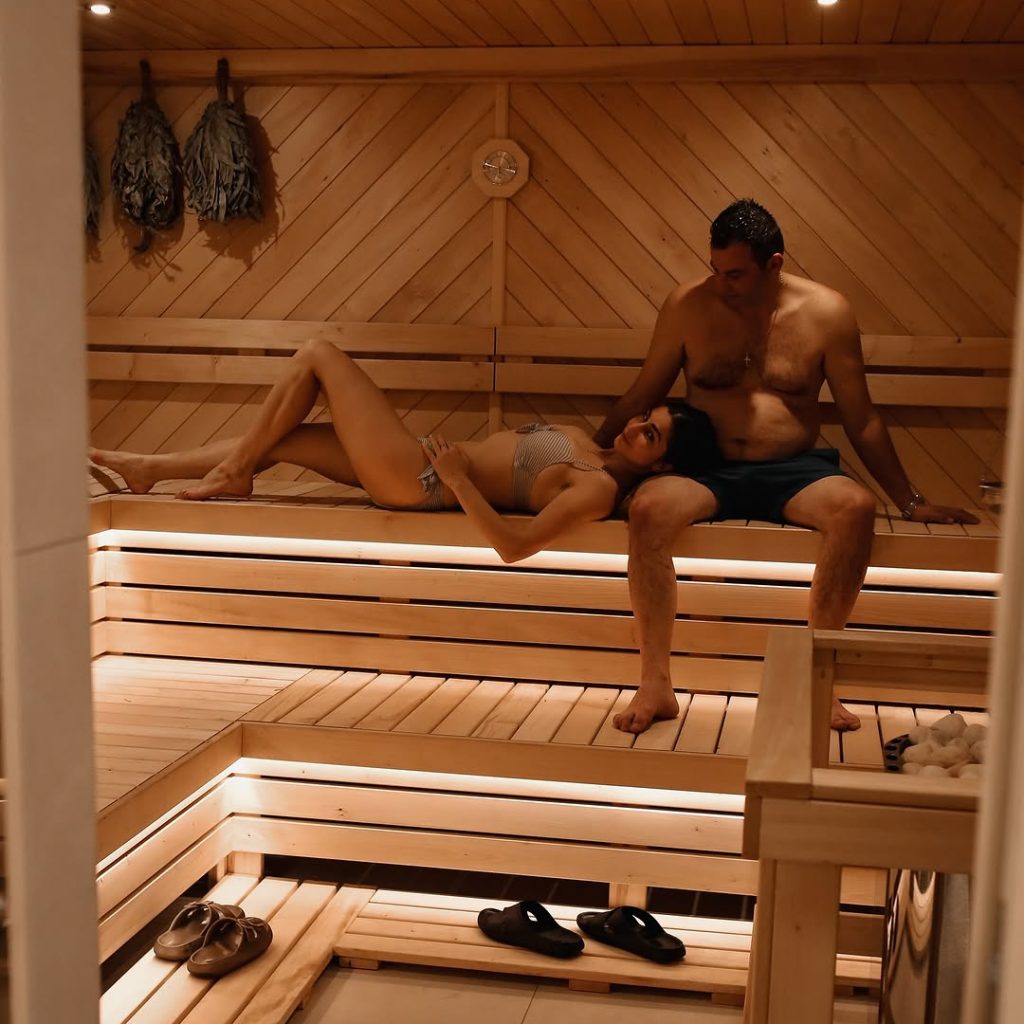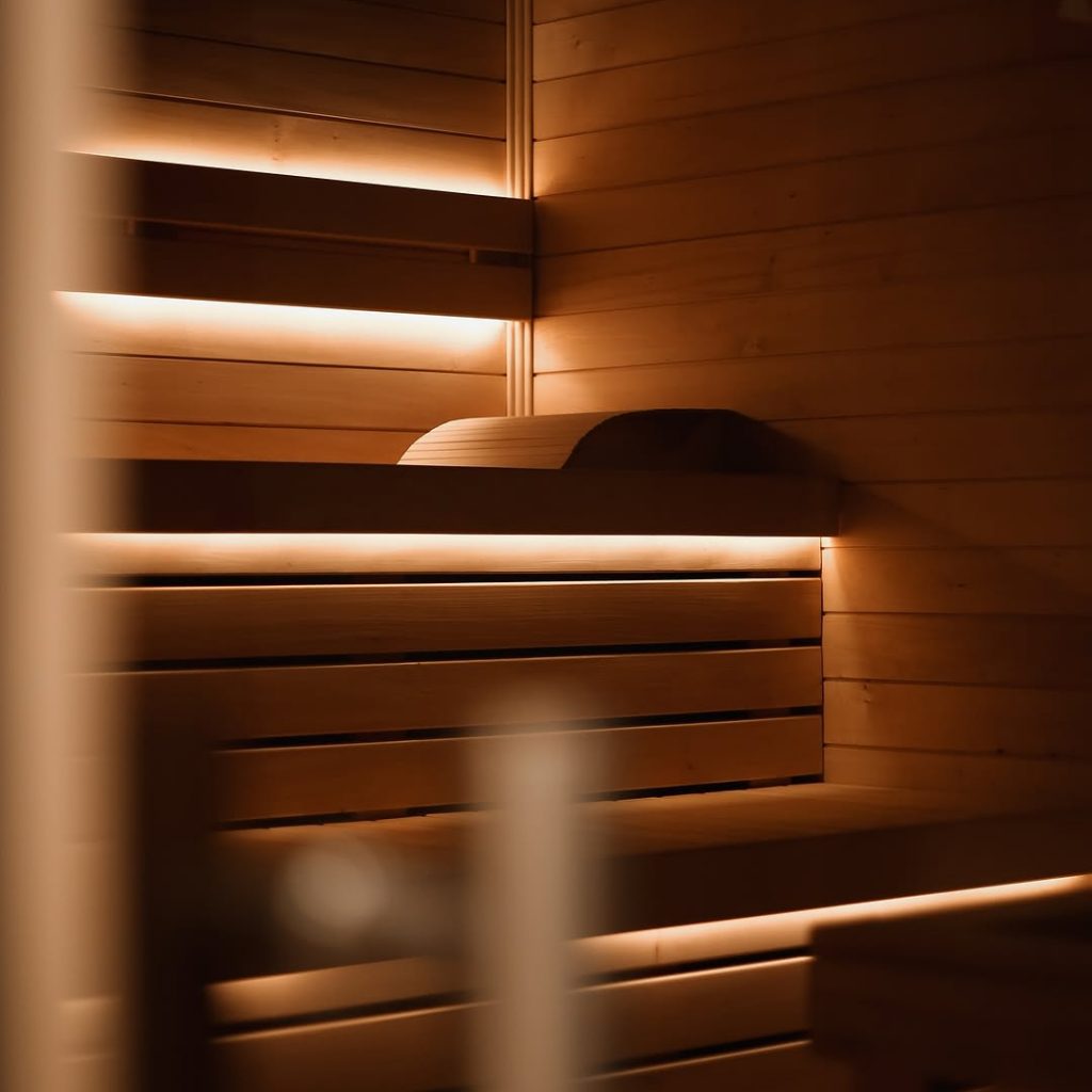 Інтер’єр фіто-сауни оформлений у природному стилі: дерев’яні поверхні, м’яке розсіяне світло,
