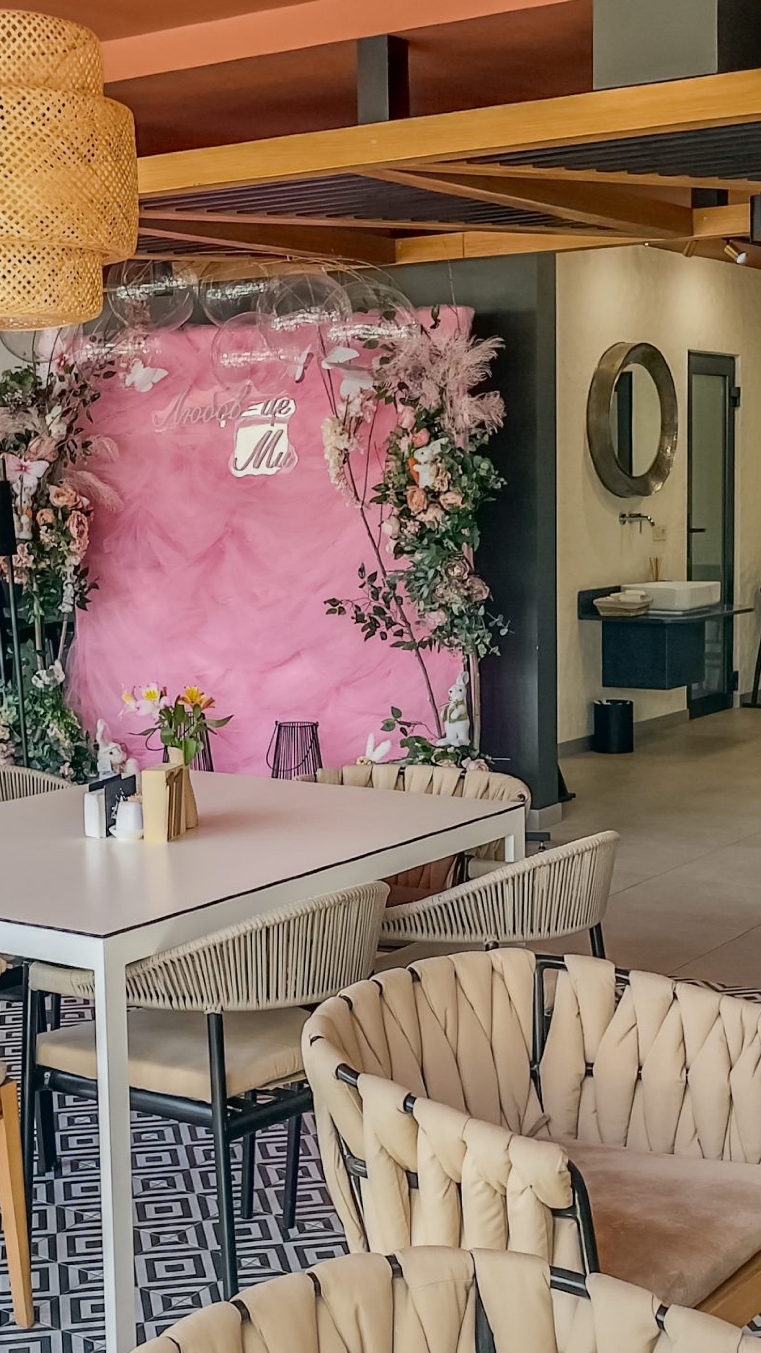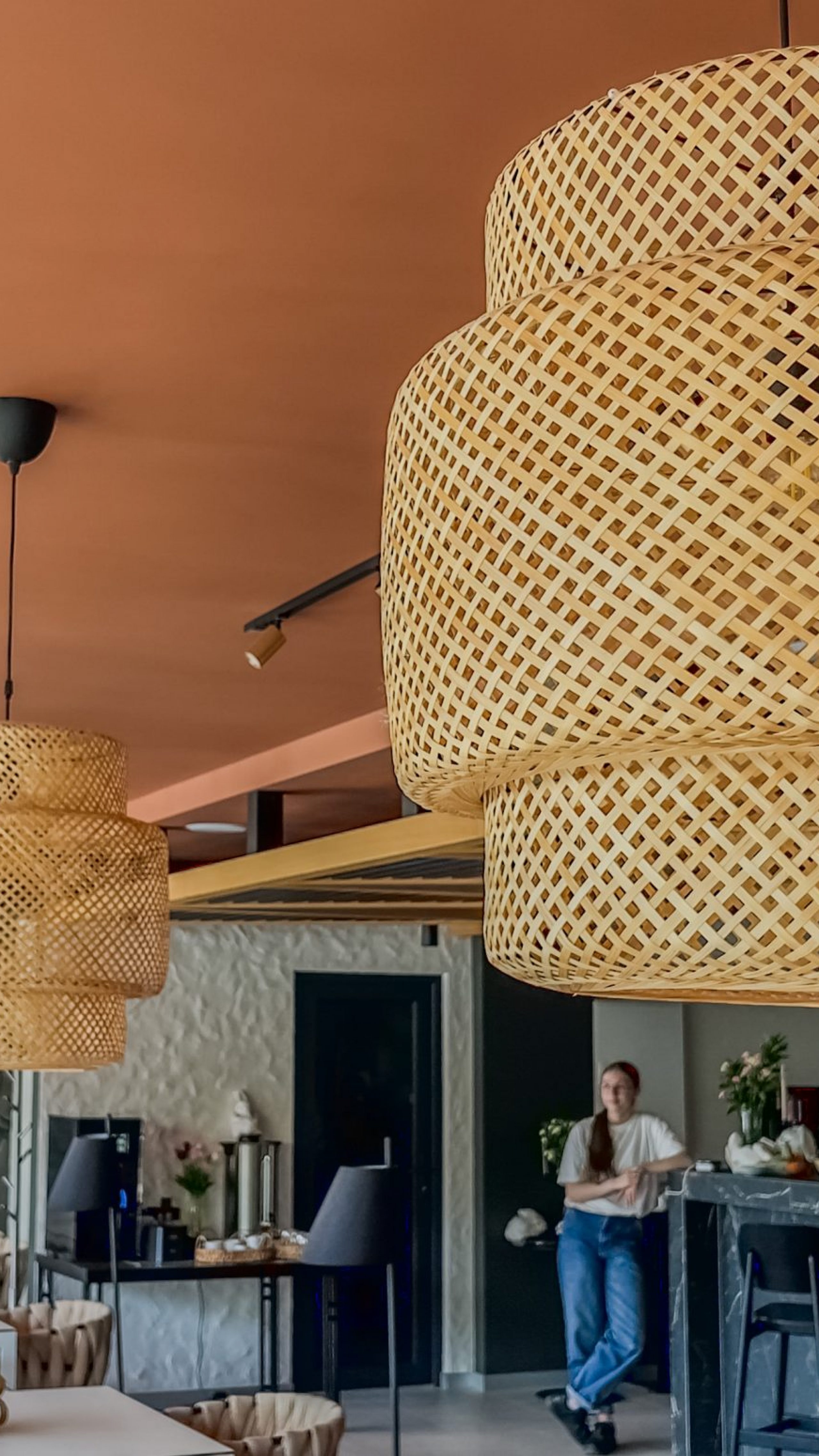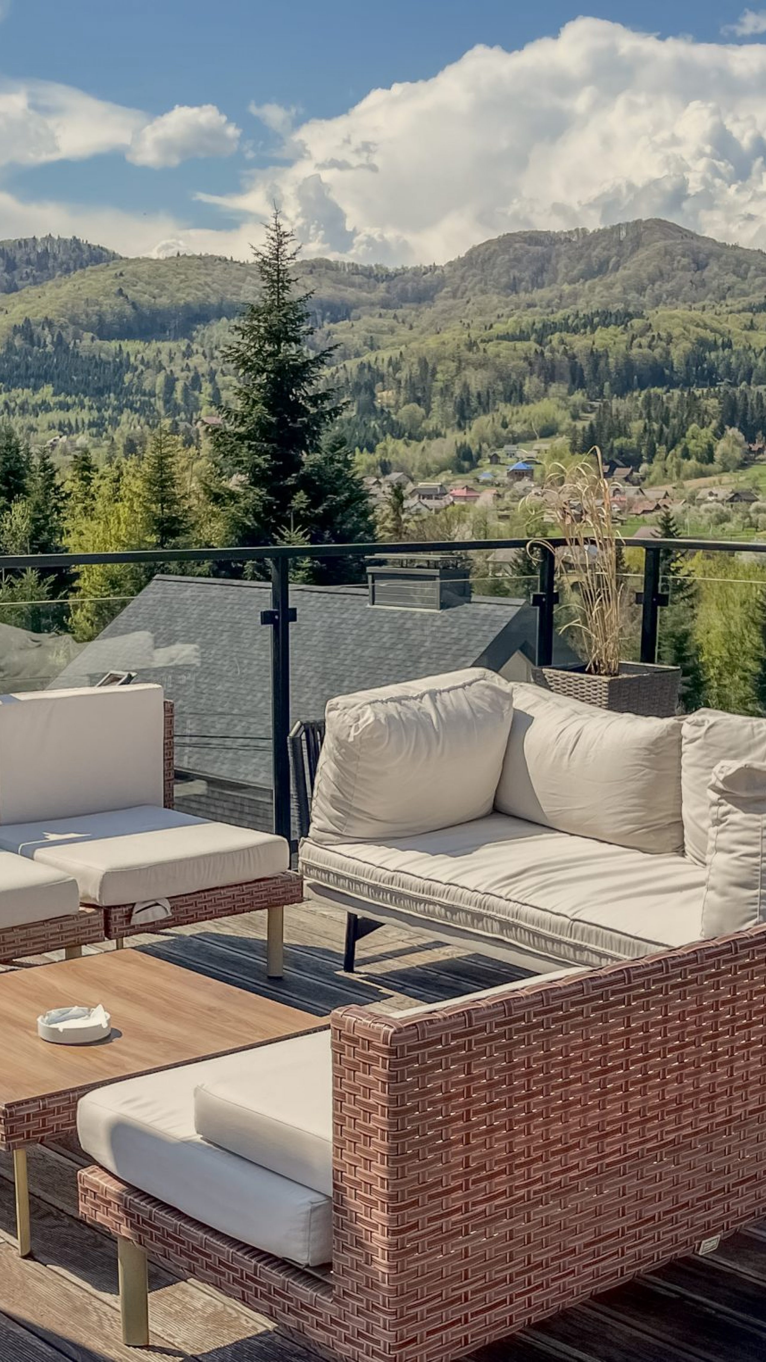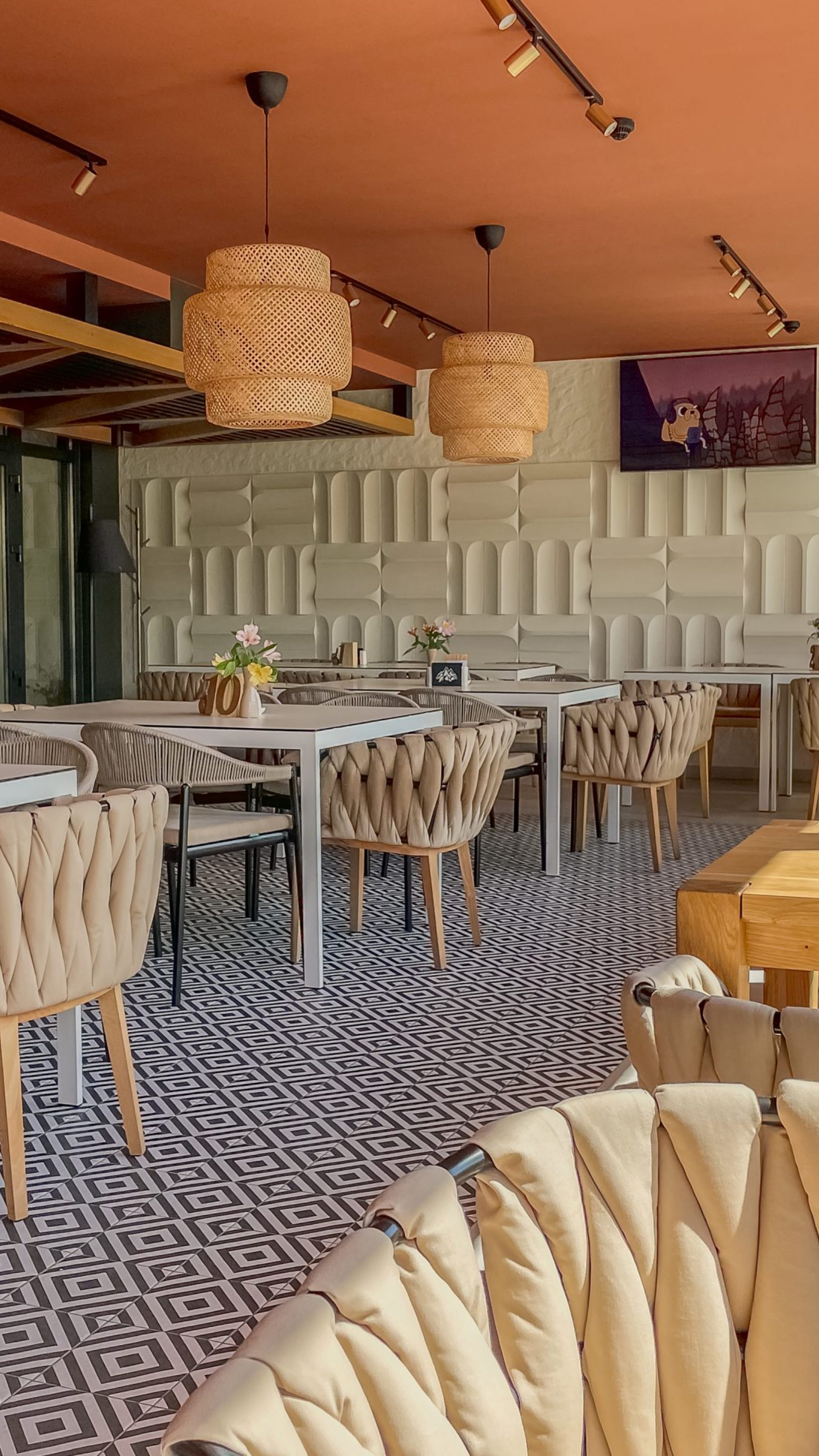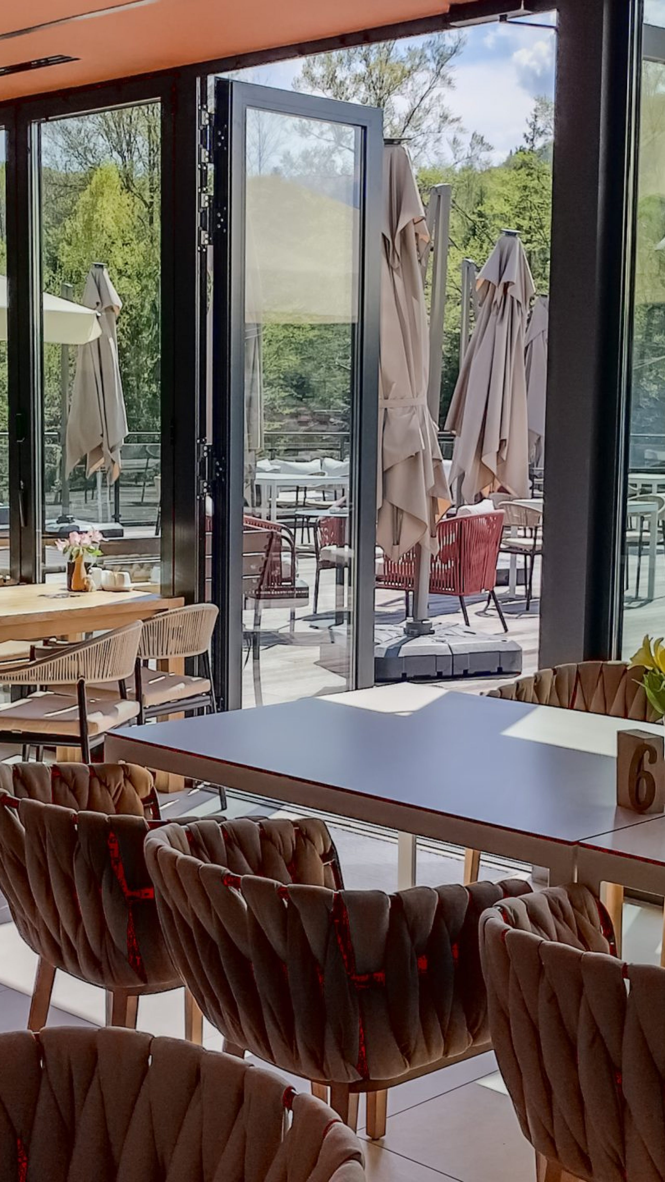 Інтер’єр ресторану гармонійно поєднує сучасний мінімалізм і натуральні матеріали: дерево, камінь, тепле освітлення. Все це створює атмосферу елегантності й затишку, яку доповнює чисте гірське повітря та види на Карпати.